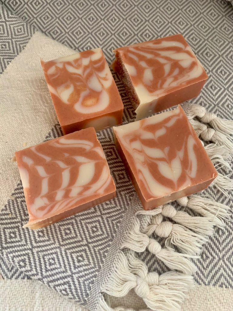 All soaps are made by hand in small batches using the traditional cold process method. Creating soaps in this way allows the ingredients to keep their therapeutic properties and are perfect for hydrating your skin. All soaps are vegan and made with all natural ingredients. The soaps are scented with pure essential oils and naturally coloured with clays or other all natural ingredients.
